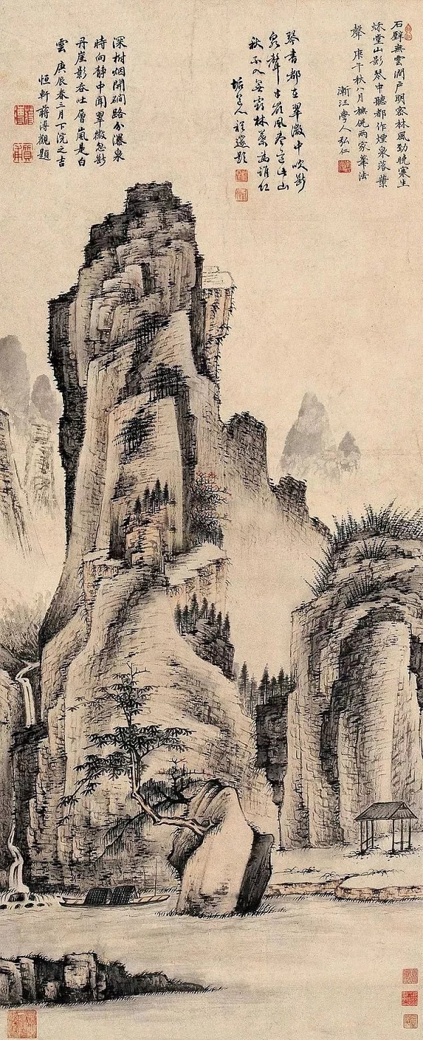 他的藝術成就,是清初特定歷史時期的反映,是遺民情結、禪宗奧旨、山水性情、古風流韻與恬靜心態在畫中融為一體后的集中再現。