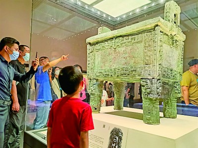 中國(guó)國(guó)家博物館的志愿講解員在為觀眾講解。