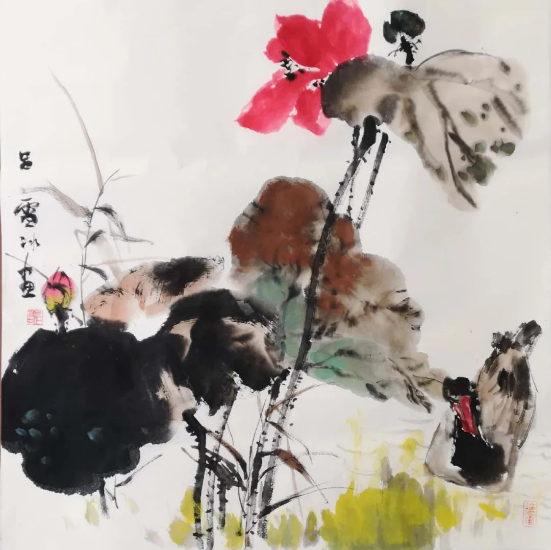 紅塵相識,機緣是一根穿針引見的線。第一次見到呂雪冰先生的荷花,約在2019年。承他厚愛,贈送我一本《呂雪冰花鳥畫集》。讓我養眼走心的,是他家的荷。