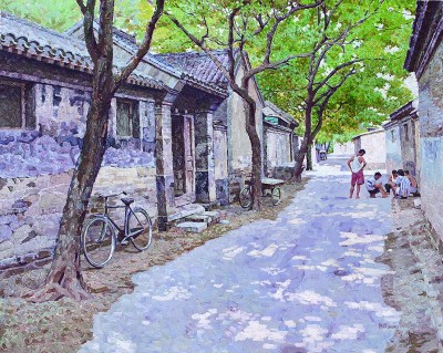胡同題材美術創作除了體現北京文化元素、記錄百姓生活,在繪畫本體語言層面也具有諸多典型特征。