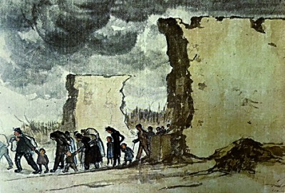 ③戰(zhàn)火中的難民(中國(guó)畫)李斛