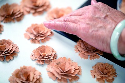 匠人正在雕刻軟木樹枝部件 資料圖片