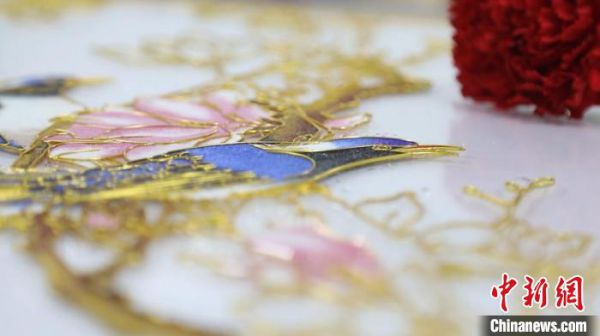 孟金花解釋說,在這之中,掐絲和點藍是最重要的環(huán)節(jié),也是構(gòu)成掐絲琺瑯畫的靈魂、骨骼及血肉。