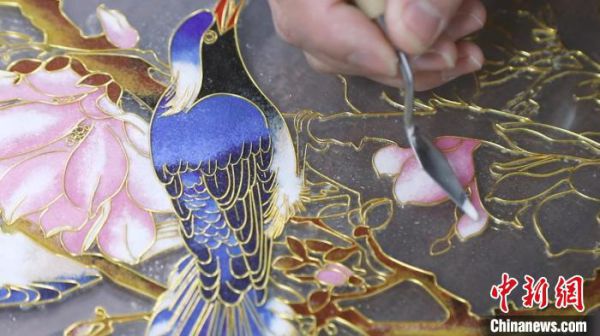 孟金花繪制掐絲琺瑯畫。朱海升供圖