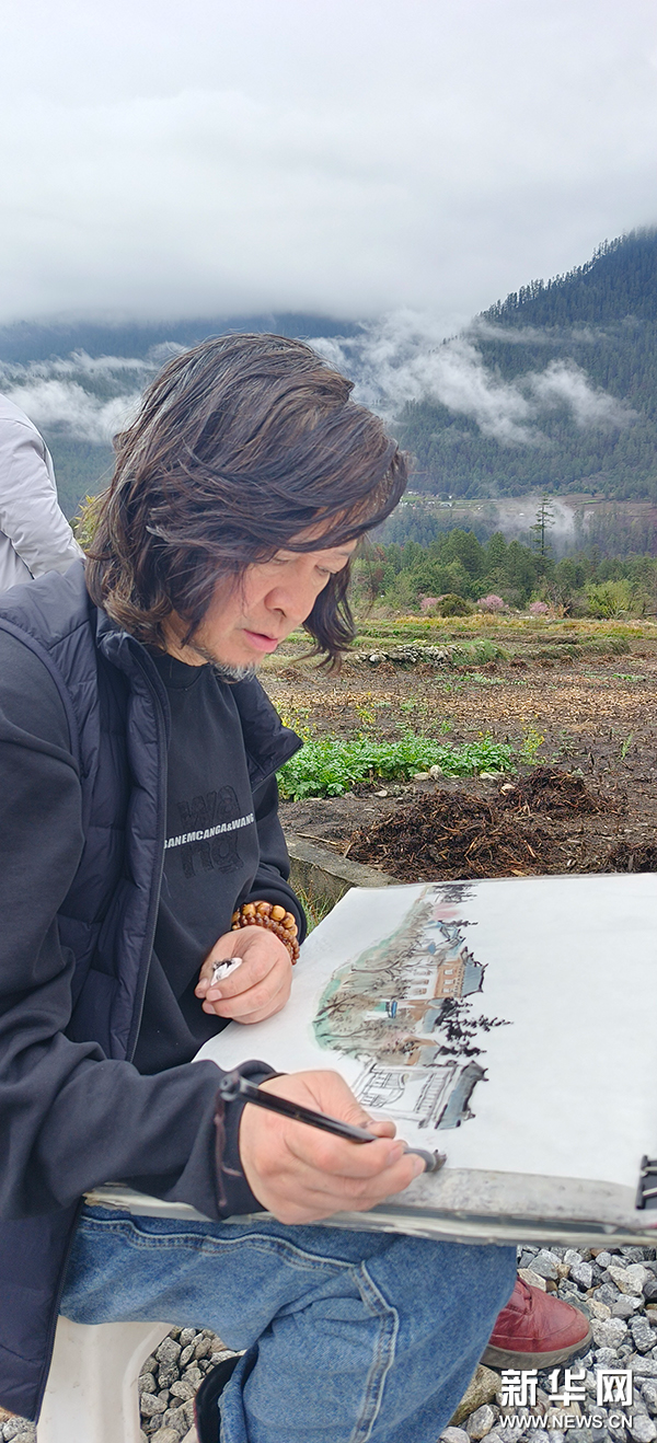 西藏自治區(qū)美術(shù)家協(xié)會名譽主席唐天源在采風(fēng)創(chuàng)作中