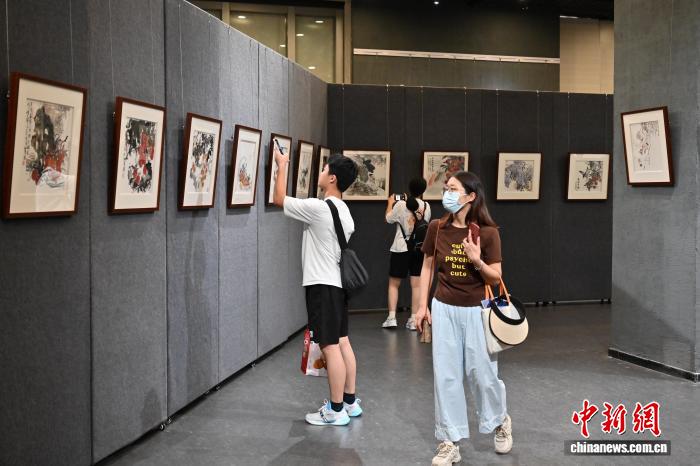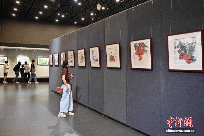 ??7月19日,“七月荔枝紅”主題書(shū)畫展吸引參觀者。近日,該展覽在廣州市廣州圖書(shū)館展出,以嶺南荔枝為主題,展現(xiàn)廣州白云區(qū)鄉(xiāng)村振興與嶺南文化魅力。中新社記者 陳楚紅 攝