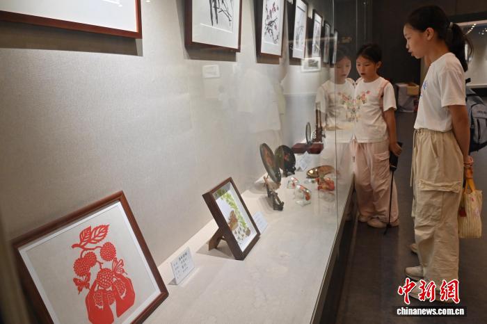 ??7月19日,“七月荔枝紅”主題書(shū)畫展展出的荔枝手工藝作品吸引參觀者。近日,該展覽在廣州市廣州圖書(shū)館展出,以嶺南荔枝為主題,展現(xiàn)廣州白云區(qū)鄉(xiāng)村振興與嶺南文化魅力。中新社記者 陳楚紅 攝
