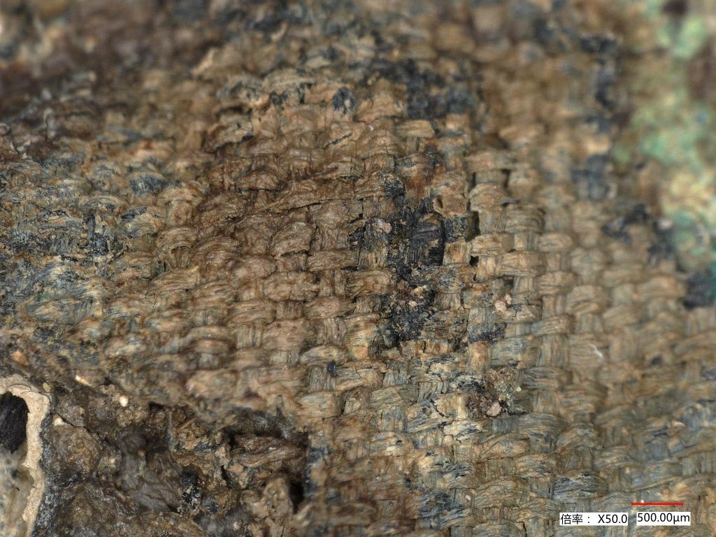 “三星堆庫房里面還有大量青銅器包塊,這些青銅器包塊明顯被焚燒過,在這個包塊上面也找到了絲。這是非常明顯的絲綢,看得非常清楚,平紋的致密的絲綢。我相信當時這塊絲綢是非常厚實的,并且顏色鮮亮。”周旸說。